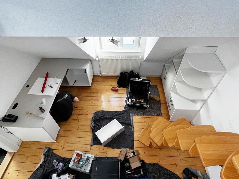 Der Prozess beginnt in der Regel mit einem Beratungsgespräch, bei dem Ihre Wünsche und der Raum besprochen werden, der zur Verfügung steht. Danach folgt eine detaillierte Planung mit Aufmaß vor Ort. Nach Freigabe des Entwurfs wird das Möbelstück in der Werkstatt gefertigt und anschließend bei Ihnen montiert.