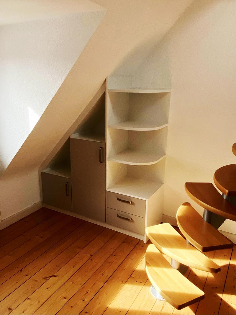 Individuell geplante und maßgefertigte Einbaumöbel sind ideal, um vorhandenen Raum optimal zu nutzen und bieten passende Lösungen für jede Wohnsituation. Von der ersten Beratung bis zur fertigen Montage begleiten wir Sie fachmännisch durch den gesamten Prozess. Unsere Handwerker verbinden hochwertige Materialien und präzise Handwerkskunst zu langlebigen, funktionalen und geschmackvollen Einbaumöbel.
